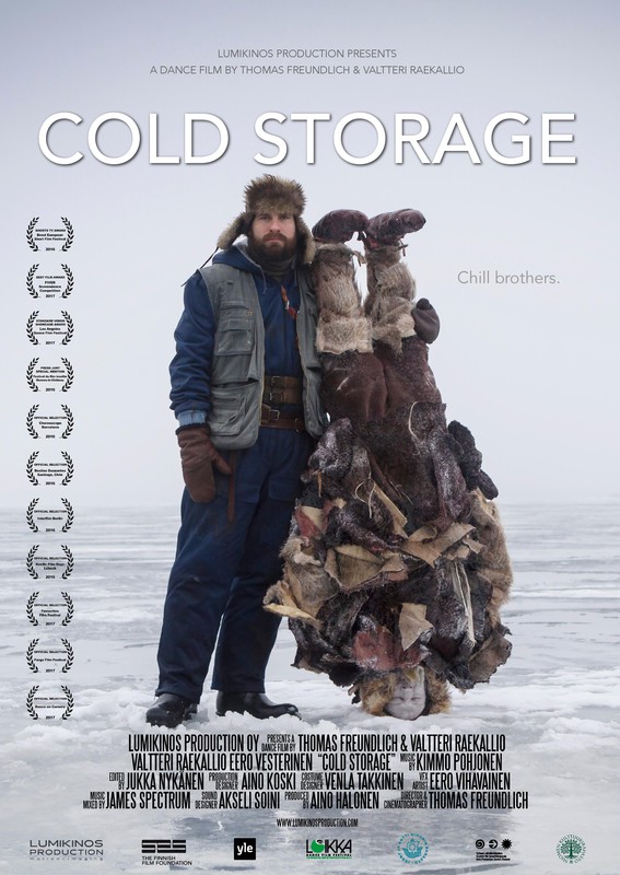 Cold Storage8:46, Finland, dir: Thomas Freundlich Cold Storage is a short dance film that pays homage to the virtuosic physical performances and melancholy comedy of the classic silent screen. On a desolate arctic shore, a lonely fisherman discovers his prehistoric counterpart frozen in the ice, and thaws him out as his newfound soul brother. Official trailer at Vimeo.