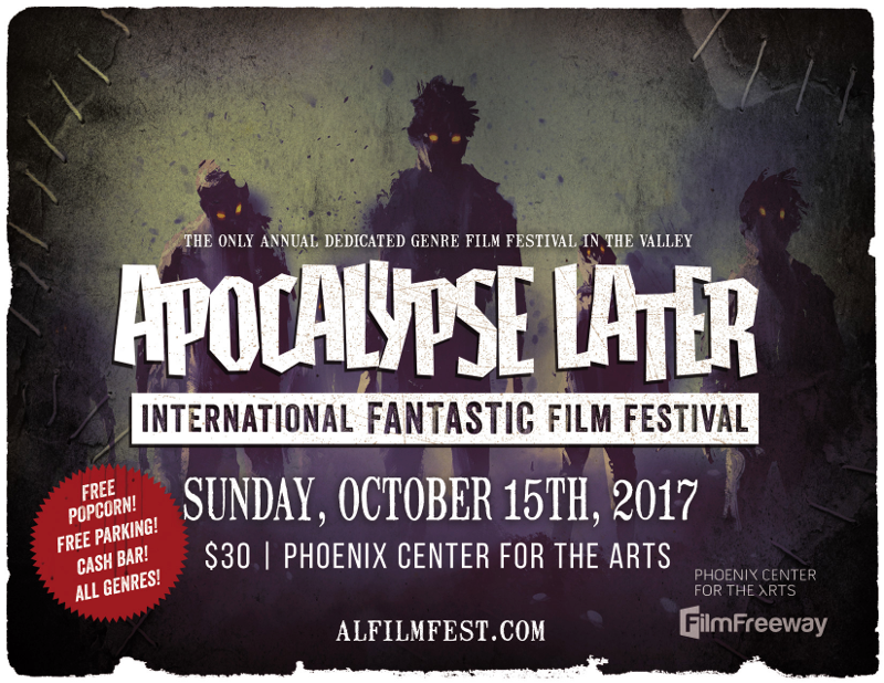 The second annual Apocalypse Later International Fantastic Film Festival (ALIFFF 2017) was held in the 3rd Street Theater at the Phoenix Center for the Arts on Sunday, 15th October, 2017. OverviewTickets were only $30 and parking, popcorn and lunch (catered by Jimmy John's) was free. Thank you to everyone who submitted a film for doing so! Thank you to the filmmakers who attended and took part in Q&As: Mirjam Clement and Howard Berger (Waking a Monster) Thank you to our panel of judges for 2017: James A. Lee, from Filmstock Film Festival AwardsOur competition films fought it out for these awards, created and designed by the ever-fantastic Tom Deadstuff! |