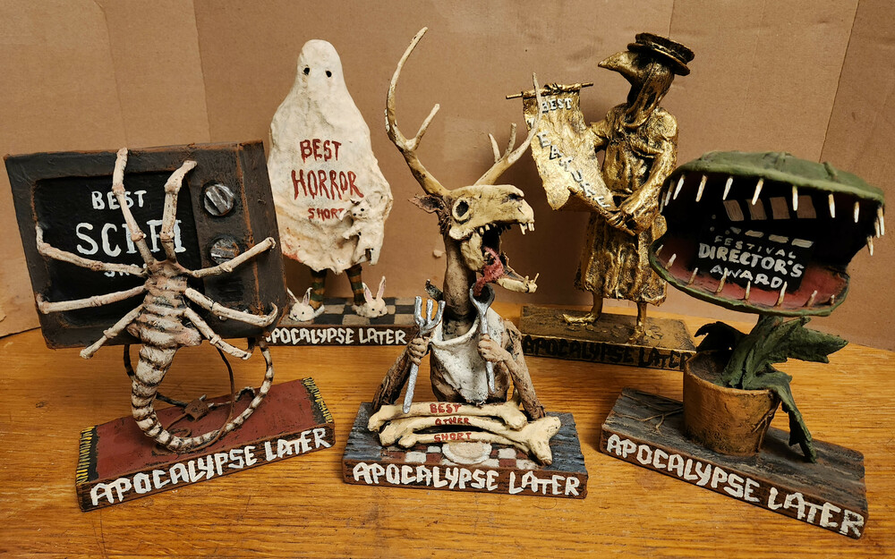 Logo by Marty Freetage. Postcard by Jason Drotman. AwardsOur competition films are fighting it out for awards created and designed by the ever-fantastic Tom Deadstuff!